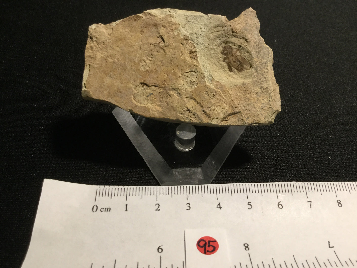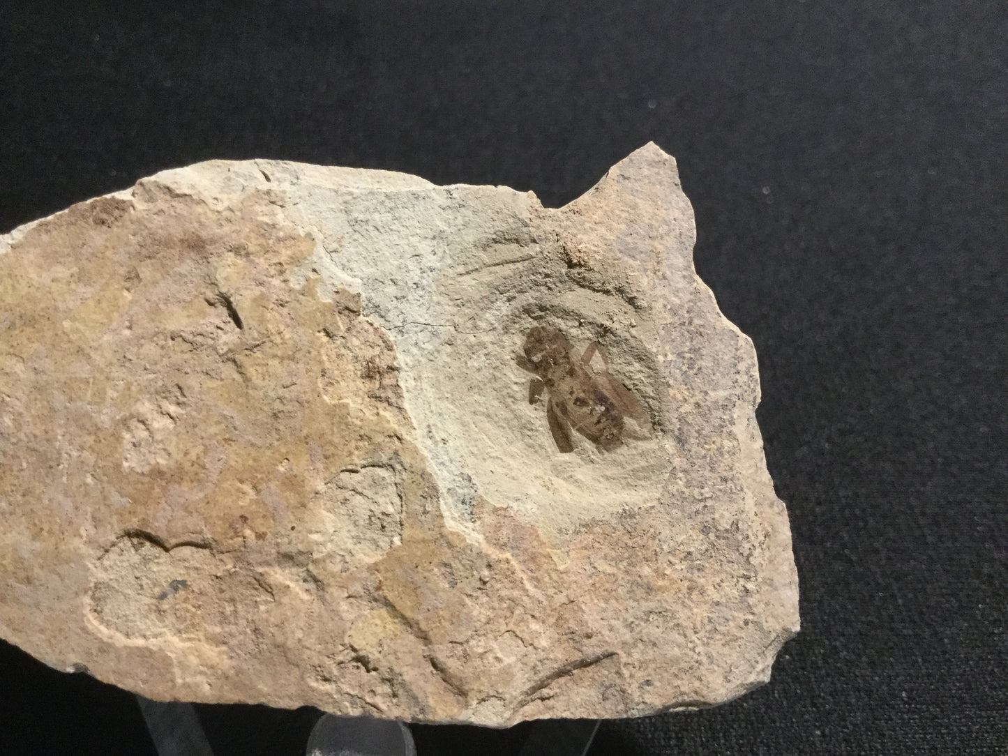 Here is a very good specimen of the cricket family Orthoptera. The head, thorax and abdomen are very well preserved. Several legs are present. With additional microscopic preparation more of this specimen could be revealed.