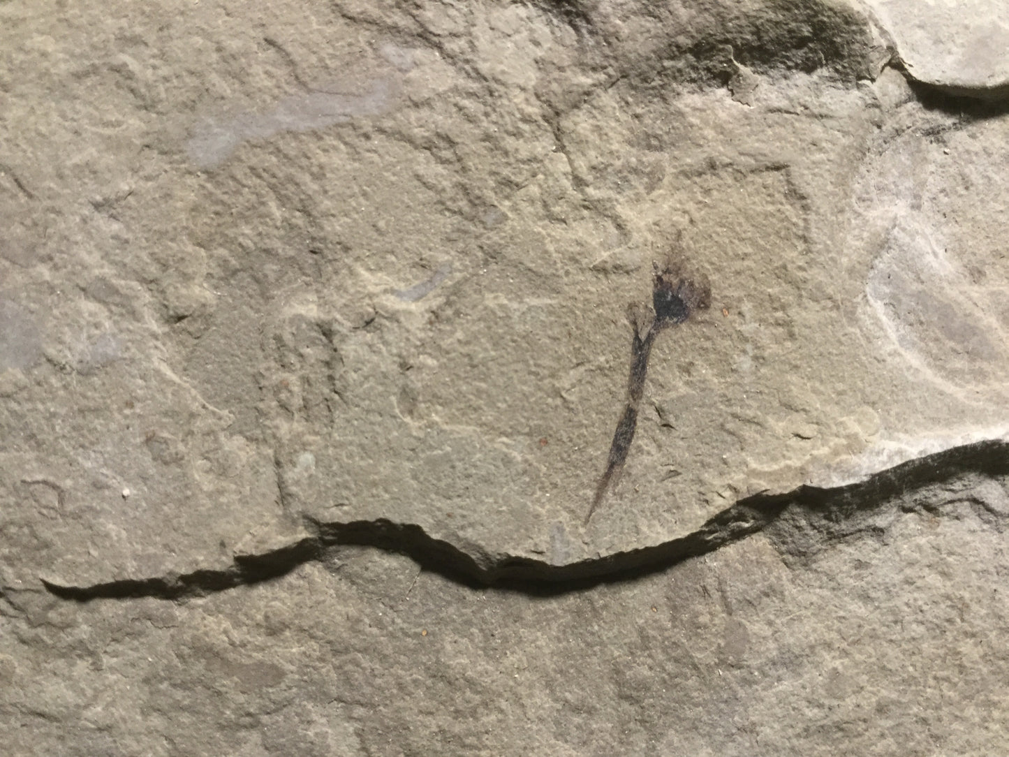 Here is a very nice example of a fossilized flower and an attached seed. The flower with sepals is Pseudosalix. The flower is staminate with globose anthers attached to individual filaments. The flower has 4 elliptical sepals with acuminate apices. The attached seed may be Lomatia.